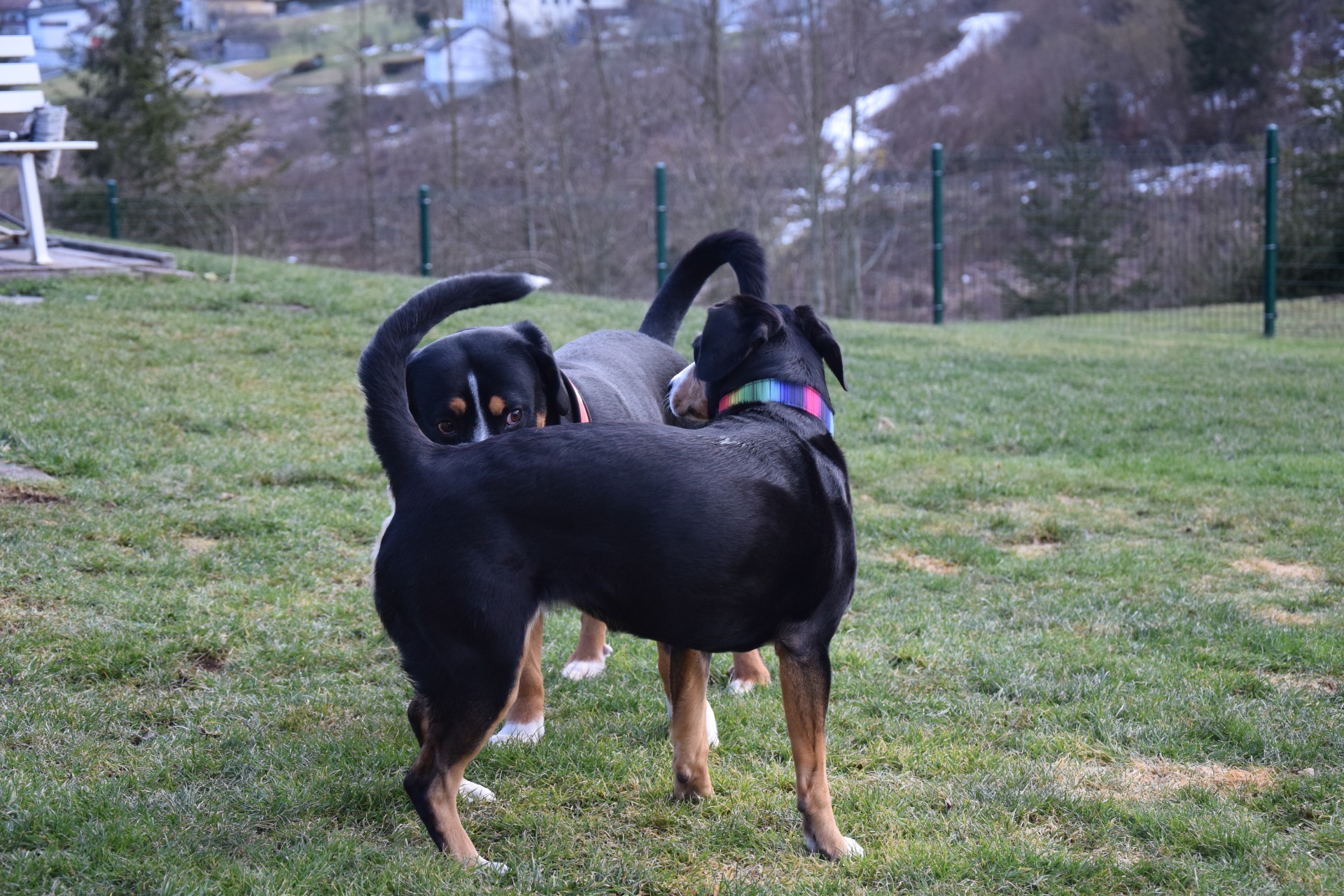 Bráškové dostali nové obojky, proběhli se po celé zahradě, seznámili se tváří v tvář s kocourem a zkusili jsme i chůzi s vodítkem. Nejlepší jsou bojové hry s mámou, které prokládají sladkým spánkem. Klukům stále hodně chutná - překonali váhu 8 kg.